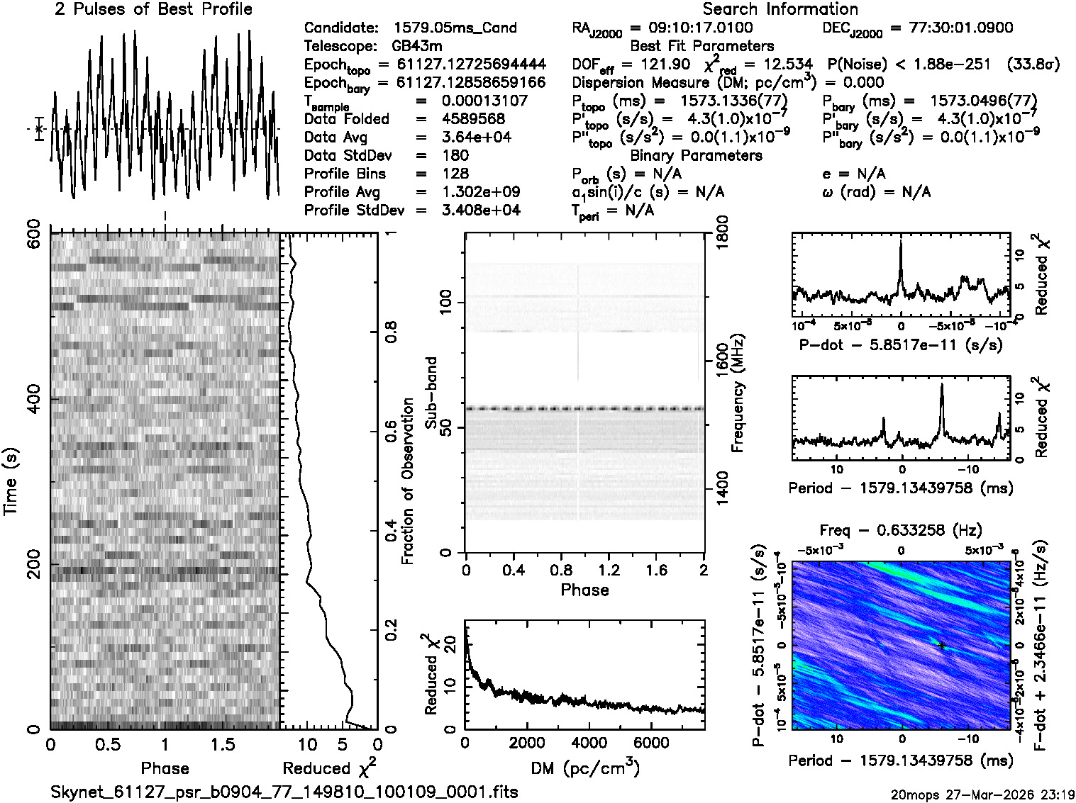 | Sample time (msec) 0.131072; Using p=1.57905, dm=0.0 from catalog |