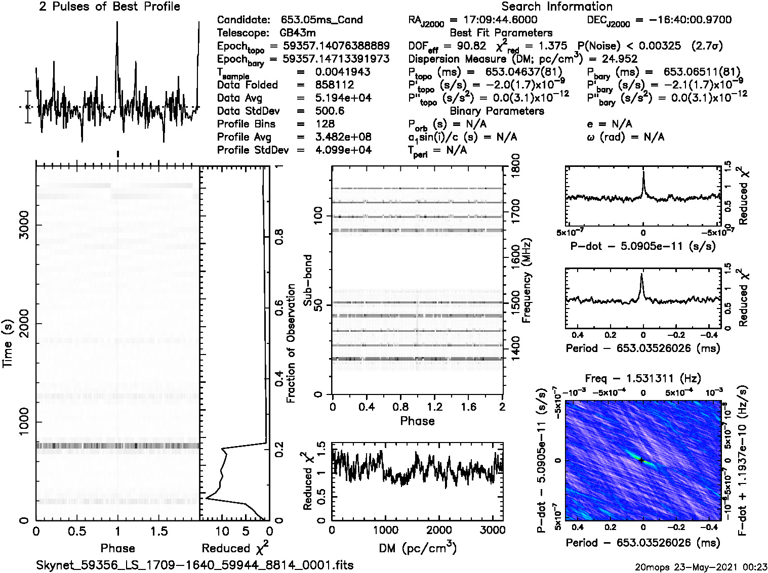 | Sample time (msec) 4.194304; Using p=0.6530540, dm=24.89 from catalog |