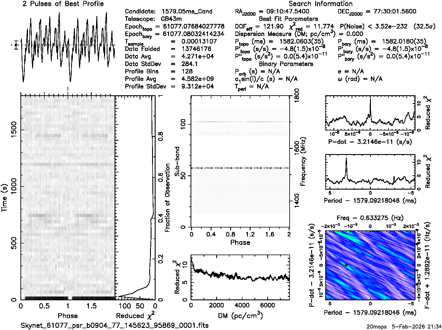 | Sample time (msec) 0.131072; Using p=1.57905, dm=0.0 from catalog |