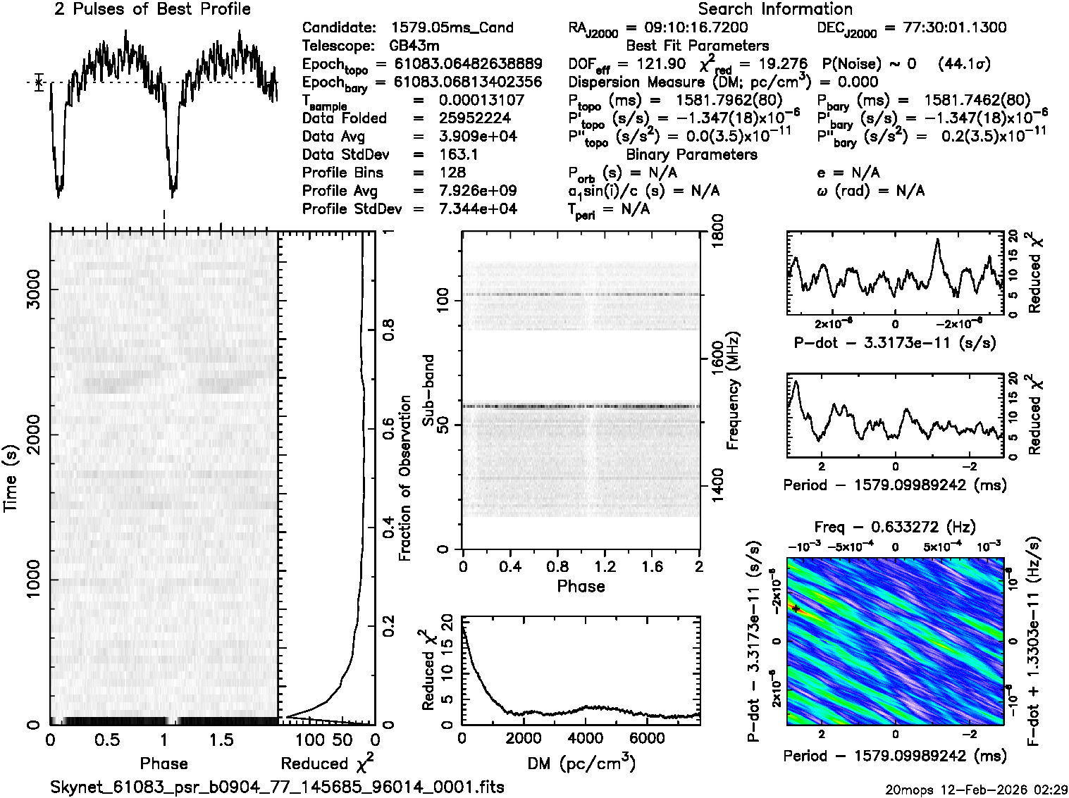 | Sample time (msec) 0.131072; Using p=1.57905, dm=0.0 from catalog |