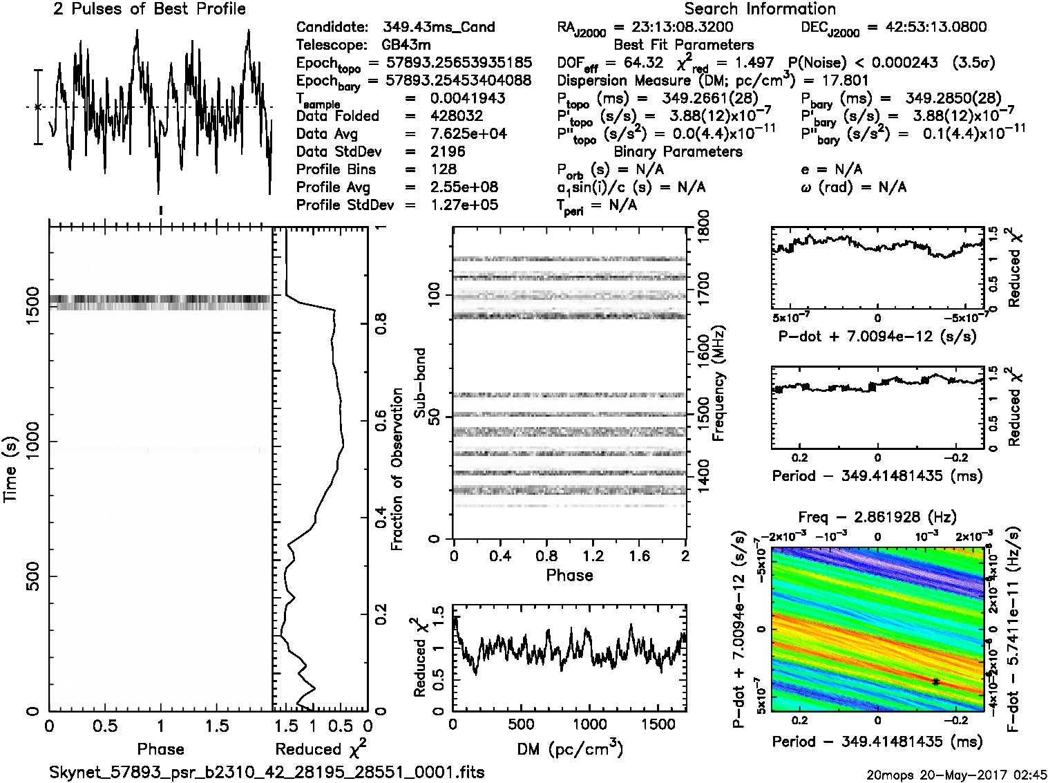 | Sample time (msec) 4.194304; Using p=0.3494337, dm=17.28 from catalog |