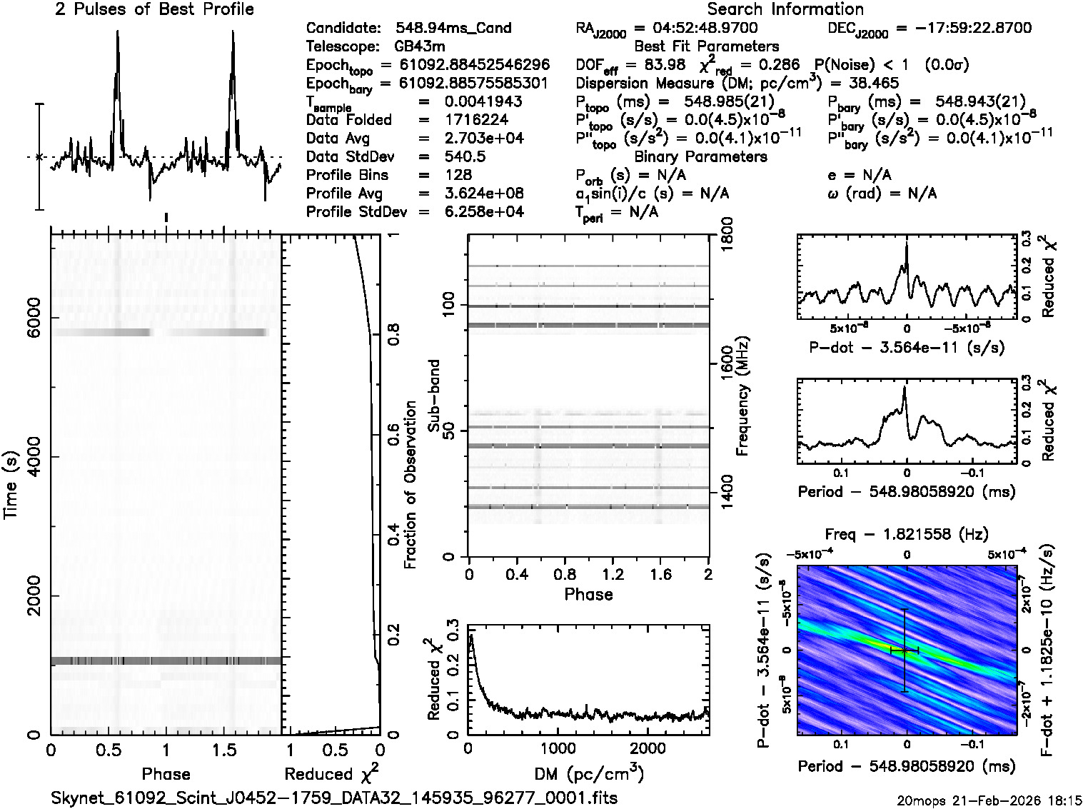 | Sample time (msec) 4.194300; Using p=0.5489392, dm=39.90 from catalog |
