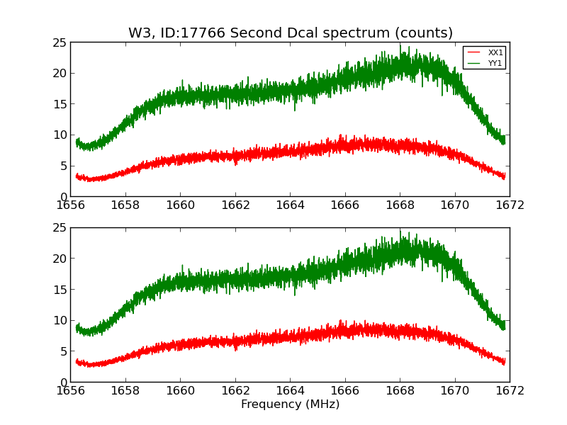 Calibrated on-source Spectrum: Calibrated off-source Spectrum: DCal 1 spectrum Dcal 2 spectrum |
