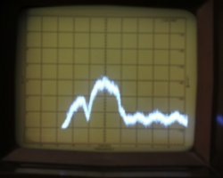 Modulation input vs. Analog output from Russian demodulator. Note 7ns jitter. |